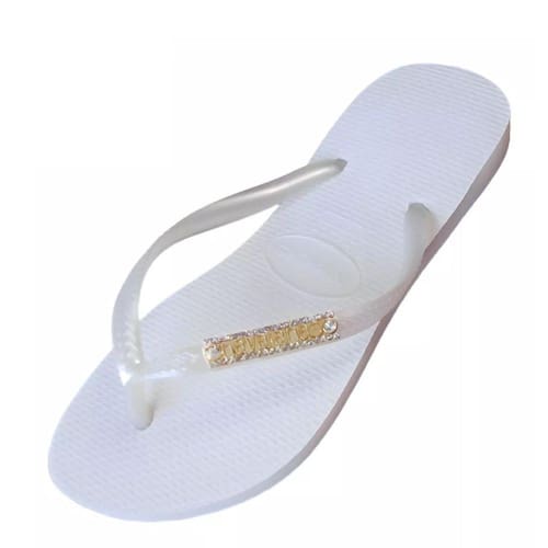 Havaianas Customizada com plaquinha Cravejada de Strass.