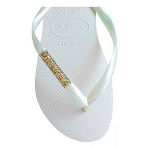 Havaianas Customizada com plaquinha Cravejada de Strass.