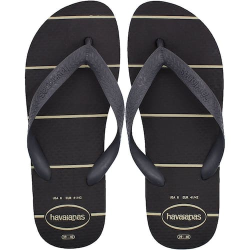 O Chinelo Havaianas de Dedo Essential é perfeito para homens clássicos, apresentando tiras largas e uma estampa com linhas horizontais. A marca dispensa apresentações, afinal, desde 1962, ela tem fornecido conforto e praticidade para a vida das pessoas, tornando-se um fenômeno em toda a América. Além disso, a marca é brasileira, democrática, versátil, clássica, estilosa e confortável.