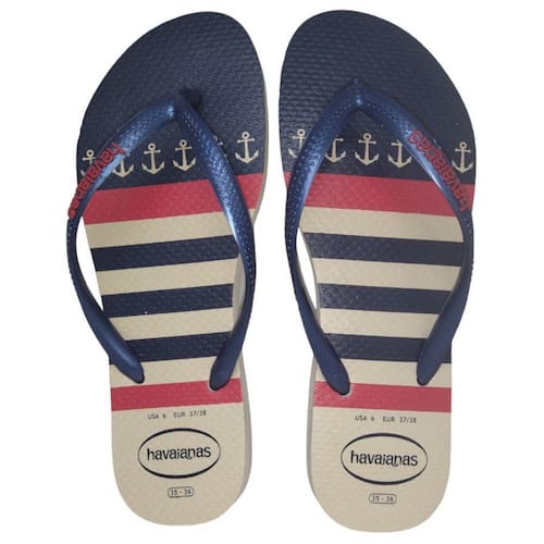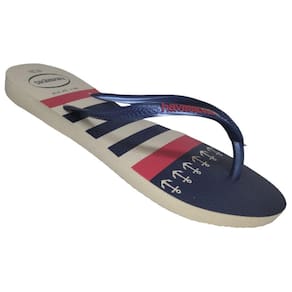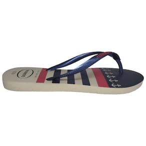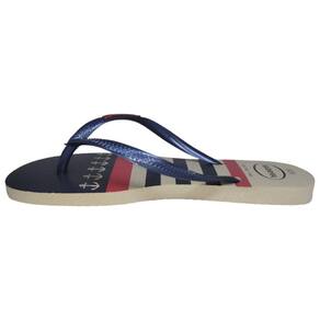 Chinelo Havaianas Slim Nautical Feminino - Bege/Marinho.