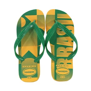 A linha Havaianas Vai Brasil (frequentemente associada aos modelos "Brasil" e "Brasil Logo") é um clássico da marca que celebra o orgulho nacional com as cores da bandeira e a famosa bandeirinha na tira.