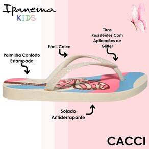 O chinelo infantil Ipanema Kids com estampa de frutas é a escolha perfeita para as crianças que amam se divertir com conforto e muito estilo. Feito com material leve, flexível e de alta qualidade, ele proporciona uma experiência única desde o primeiro passo, acompanhando os pequenos com segurança em todas as aventuras do dia. A palmilha estampada é extremamente confortável, macia ao toque e pensada para dar aquele aconchego que o pezinho infantil precisa, além de trazer um visual alegre e lúdico que encanta. As tiras são reforçadas, bem firmes e ganham um charme especial com aplicações de glitter, trazendo brilho e diversão ao look sem comprometer a resistência e durabilidade do calçado. Além disso, o fácil calce garante praticidade tanto para os pais quanto para as crianças, promovendo autonomia na hora de se vestir. O solado com tecnologia antiderrapante garante estabilidade em diferentes tipos de piso, tornando o chinelo ideal para uso em casa, no passeio, no parquinho ou até na escola. O design ergonômico oferece liberdade para os movimentos e leveza na pisada, fazendo desse modelo um verdadeiro aliado na rotina agitada e cheia de energia dos pequenos. Charmoso, seguro, funcional e confortável, é um chinelo que cuida do visual e da liberdade da criançada ao mesmo tempo.
