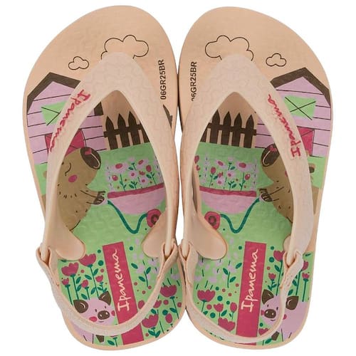 O modelo conta com calce fácil, o que facilita muito a rotina, principalmente na hora da correria. O elástico traseiro oferece firmeza extra aos pezinhos, permitindo que as crianças brinquem, corram e se movimentem com segurança. A tira de dedo é resistente e confortável, evitando incômodos durante o uso prolongado. Além disso, o cabedal em material macio traz leveza ao caminhar e ainda apresenta estampas divertidas que deixam o visual cheio de personalidade.