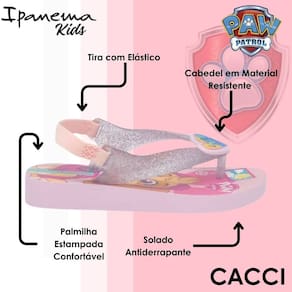 O Chinelo Ipanema Kids Patrulha Canina é a escolha perfeita para as pequenas aventureiras que amam a Patrulha Canina! Com uma estampa divertida dos personagens favoritos, ele tem estilo e praticidade para o dia a dia das crianças. O modelo conta com um elástico traseiro, garantindo segurança e um ajuste perfeito aos pezinhos em movimento. Feito em material leve e confortável, o chinelo também possui solado antiderrapante, ideal para brincar com liberdade. Com o Ipanema Kids Patrulha Canina, cada passo vira uma nova aventura!