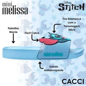 O Chinelo Slide Mini Melissa Flowing Stitch é a escolha perfeita para quem ama praticidade e charme. Com design inspirado no adorável personagem Stitch, este modelo traz uma tira larga estampada que adiciona um toque divertido e cheio de personalidade ao visual.