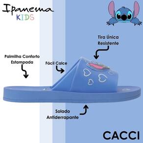 O chinelo slide infantil da linha Ipanema Kids, com estampa exclusiva do personagem Stitch, é o companheiro ideal para a rotina agitada e divertida dos pequenos. Desenvolvido com atenção aos mínimos detalhes, esse modelo une conforto, segurança e muito estilo para que as crianças possam aproveitar cada momento com liberdade. Seu design moderno e funcional conta com tira única resistente e macia, que se adapta perfeitamente ao pé, garantindo firmeza sem apertar. O fácil calce permite que os pequenos coloquem e tirem o calçado sozinhos, estimulando a autonomia e facilitando o dia a dia dos pais. A palmilha é estampada com cores vibrantes e temas lúdicos que encantam, além de ser extremamente macia, oferecendo uma sensação agradável a cada pisada. O solado antiderrapante foi pensado especialmente para acompanhar a energia das crianças, proporcionando aderência e estabilidade em diferentes superfícies, dentro ou fora de casa. O material utilizado é leve, resistente e de fácil limpeza, ideal para a rotina intensa dos pequenos. Além disso, o visual divertido inspirado no Stitch faz desse modelo muito mais do que um chinelo: é um item de moda infantil que permite que os pequenos expressem sua personalidade desde cedo. Perfeito para usar na escola, em casa, no parque ou na praia, ele une funcionalidade e charme em um só calçado. Um modelo que cuida do bem-estar, da segurança e do estilo das crianças com o selo de qualidade Ipanema.