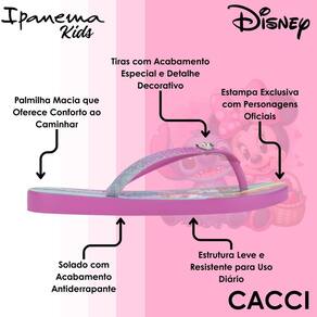 O Chinelo de Dedo Infantil Disney Glam Ipanema foi criado para transformar o dia a dia das pequenas em momentos cheios de diversão e estilo. Com personagens icônicos da Disney, o modelo encanta logo no primeiro olhar, unindo visual alegre, acabamento caprichado e o conforto ideal para acompanhar passeios, brincadeiras e momentos de lazer com leveza e segurança.