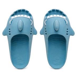 Chinelo Infantil Slide Tubarao Divertido Barbatana Calce Facil Microexpandido Conforto Resistente - Azul Claro - 34