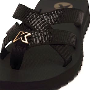 O Chinelo Kenner Kyra Spider Glam Feminino possui uma palmilha macia e super confortável juntamente com o solado de borracha vulcanizada com elevação em plataforma. O cabedal com várias tiras proporcionam segurança no seu caminho, o diferencial fica por conta dos detalhes, o pin metálico K dourado, possui solado flexível e antiderrapante.