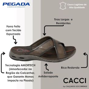 Confeccionado em couro de alta qualidade, este chinelo proporciona durabilidade e uma sensação luxuosa. A sua estrutura leve permite uma mobilidade fácil, tornando-o uma escolha ideal para o dia a dia, além de ser uma opção confortável para momentos de lazer.