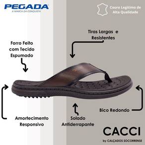 Confeccionado em couro de alta qualidade, este chinelo une durabilidade e sofisticação. A textura suave do couro proporciona uma sensação agradável ao toque, enquanto a estrutura cuidadosamente projetada garante leveza e flexibilidade, permitindo que seus pés respirem.
