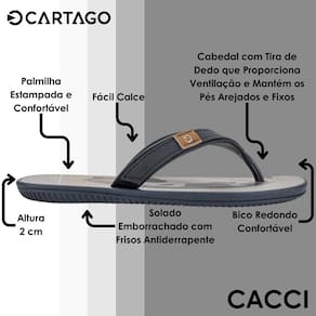 O chinelo de dedo Cartago Dakar é um clássico que combina conforto e estilo, oferecendo um toque de versatilidade para looks casuais. O modelo apresenta grafismos inspirados no montanhismo e no country, tornando-o um destaque nas gôndolas do seu ponto de venda. Um clássico de sucesso nas gôndolas está disponível com novas cores e é uma excelente opção para quem busca um produto que une estilo e praticidade