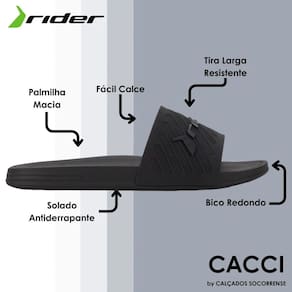 Prepare-se para uma experie^ncia de conforto e estilo como nunca antes com o Chinelo RIDER FREE II SLIDE AD . Projetado para os apaixonados por moda que na~o abrem ma~o do conforto, este chinelo eleva o conceito de calc¸ado casual a um novo patamar. Criado pela renomada marca RIDER, cada par e´ uma obra-prima de design e inovac¸a~o, garantindo uma jornada de moda e comodidade para seus pe´s.