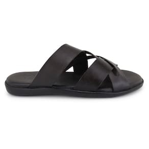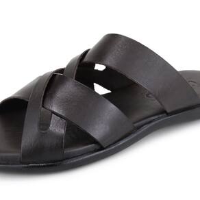 Chinelo Masculino Couro Com Tiras Confortável Resistente - 43 - Marrom Chocolate