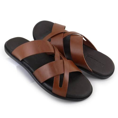 Chinelo Masculino Couro Com Tiras Confortável Resistente - 43 - Marrom
