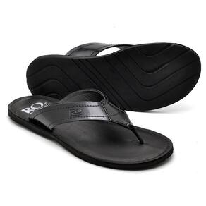 Chinelo Masculino Couro De Dedo Tiras Largas Dia a Dia - 43 - Preto