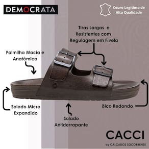 Chinelo Masculino Couro Macio Conforto Casual Soul Democrata é a escolha perfeita para quem busca estilo e conforto em um único calçado. Confeccionada em couro autêntico na elegante cor café, ela combina sofisticação e durabilidade para acompanhar você em diversas ocasiões. Seu design casual é valorizado pelo ajuste personalizado das fivelas de metal, proporcionando um encaixe perfeito aos pés. O solado de micro expandido garante leveza e maciez a cada passo, tornando o caminhar ainda mais confortável. Aposte na qualidade e tradição da Democrata e experimente o equilíbrio ideal entre elegância e bem-estar.