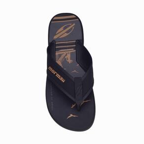 O chinelo Mormaii wave ganha novo cabedal, com tiras que trazem design que simulando acabamento em vira têxtil e costuras, tudo com alta tecnologia de definição, além de uma combinação entre acabamentos fosco e polido, que deixam o visual do produto ainda melhor. O logo de Mormaii é aplicado na dedeira. As listras que aparecem nas pranchas e bermudas de surf são transformadas em grafias, em combinação com a silhueta da praia. As combinações de cores trazem uma proposta urbana e moderna.