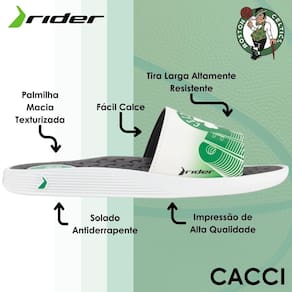 O Rider Pump NBA II Slide é um slide licenciado NBA com sola em PVC expandido, palmilha em EVA conformada inspirada nos calçados esportivos com volumetria que proporciona conforto. Possui gáspea em coverline com serigrafia e frequência, além de forro em corte a fio costurado na gáspea. Seu jogo de cores proporciona modernidade e esportividade, tendo como inspiração os principais times da NBA.