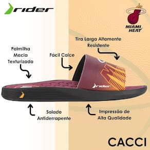 O Rider Pump NBA II Slide é um slide licenciado NBA com sola em PVC expandido, palmilha em EVA conformada inspirada nos calçados esportivos com volumetria que proporciona conforto. Possui gáspea em coverline com serigrafia e frequência, além de forro em corte a fio costurado na gáspea. Seu jogo de cores proporciona modernidade e esportividade, tendo como inspiração os principais times da NBA.