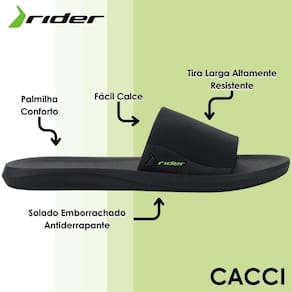 O Chinelo Rider Slide é a escolha ideal para quem busca praticidade, conforto e durabilidade em um só modelo. Com design moderno e minimalista, ele conta com uma tira larga altamente resistente que garante firmeza aos pés, mesmo em usos prolongados. O calce é fácil, permitindo mais agilidade na rotina, sem abrir mão da segurança.