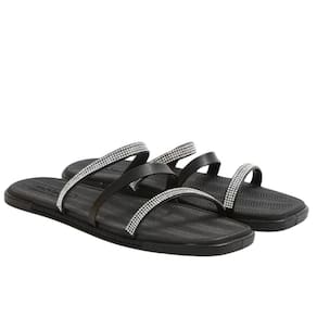 Chinelo Moleca Rasteiro Três Tiras Feminino Preto Strass 337355