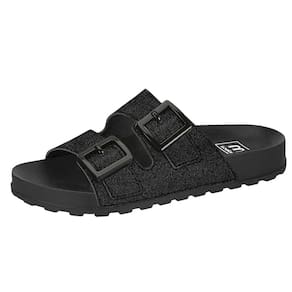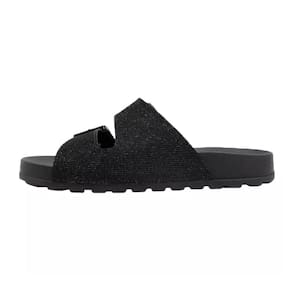 As tiras grossas são macias e resistentes, com aplicação de glitter para um toque glamouroso. Além disso, o ajuste em fivela permite um encaixe ideal para maior firmeza e segurança.