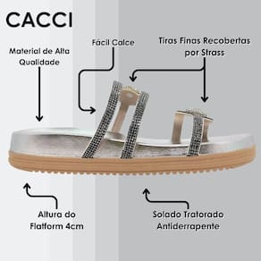 Experimente o brilho e o conforto incomparável da nossa papete Cacci, pensada para facilitar o seu dia a dia com muito estilo. Com design fácil de calçar, ela é prática e funcional, perfeita para quem busca agilidade sem comprometer o visual.