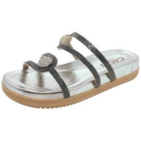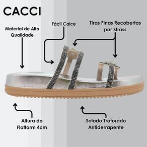 Chinelo Papete Feminino Flatform Chique Social Cacci - 37 - Prata