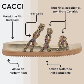 Dê um toque de glamour ao seu dia a dia com nossa papete flatform Cacci, criada para quem busca estilo, conforto e praticidade. Com design de fácil calce, ela é perfeita para quem não abre mão de agilidade sem perder o charme.