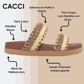 Transforme seu visual com a Papete Cacci, a escolha ideal para quem busca sofisticação e conforto sem abrir mão da praticidade. Esta papete é um verdadeiro destaque da moda, com tiras de enfeites artesanais em palha que adicionam um charme rústico e natural ao seu look. Detalhes brilhantes, como strass e pequenas pedras, conferem um toque de glamour sutil, tornando-a perfeita para diversas ocasiões, desde um passeio descontraído até um evento especial.