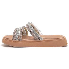 Para adicionar um toque de glamour ao visual, as tiras do chinelo são adornadas com strass delicados, que brilham sob a luz do sol. Combinando charme e sofisticação, as tiras proporcionam um ajuste confortável, garantindo que os pés fiquem seguros e bem acomodados.