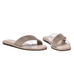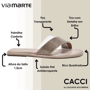 Experimente o conforto e a sofisticação impecável da Rasteira Via Marte, com seu solado flat e bico quadrado, proporcionando um equilíbrio perfeito entre moda e bem-estar. As deslumbrantes tiras que envolvem seus pés apresentam um detalhe com brilho incomparável, garantindo que você esteja sempre deslumbrante. Calçado moderno e versátil que você precisa para elevar o estilo de todos os seus looks.