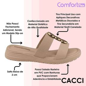 A tira principal recebe detalhes elegantes que elevam o visual e dão um toque refinado sem exagero. A tira secundária, com textura agradável ao toque, contribui para um encaixe mais firme, oferecendo estabilidade em cada passo. A combinação desses elementos cria um equilíbrio interessante entre estilo discreto e funcionalidade, tornando o modelo versátil para diversas ocasiões.