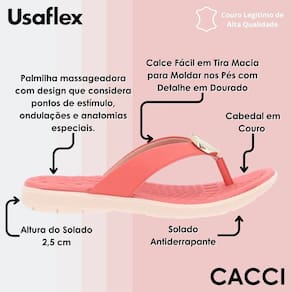 Chinelo baixo cabedal em couro napa valise goiaba detalhe enfeite. Palmilha massageadora com design que considera pontos de estímulo, ondulações e anatomias especiais. Ideal para passar longos períodos em pé.