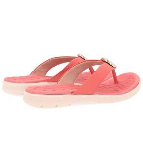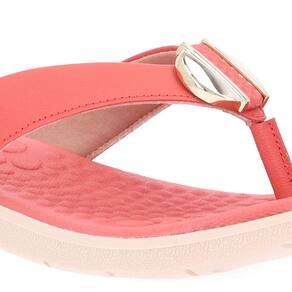 Chinelo baixo cabedal em couro napa valise goiaba detalhe enfeite. Palmilha massageadora com design que considera pontos de estímulo, ondulações e anatomias especiais. Ideal para passar longos períodos em pé.