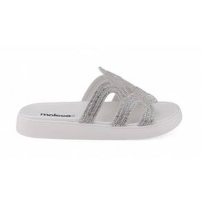 Chinelo Slide Casual Feminino Moleca 5469.134 Strass GELO/CRISTAL 34