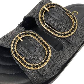 Chinelo Slide Fácil Calce Strass Moderno Conforto Cacci - 34 - Preto