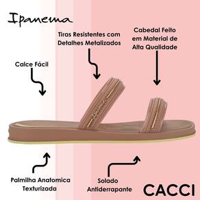 Desenvolvido com material de alta qualidade, conta com tiras resistentes que trazem detalhes sofisticados, proporcionando charme extra ao modelo. A palmilha anatômica texturizada foi pensada para entregar maciez a cada passo, tornando a experiência de uso muito mais agradável. Além disso, o solado antiderrapante garante firmeza e segurança ao caminhar, seja em ambientes internos ou externos, proporcionando tranquilidade em todas as ocasiões.