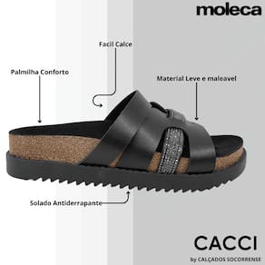 Fabricado pela renomada marca Moleca, este chinelo não só impressiona visualmente, mas também garante uma experiência de uso excepcional. A palmilha macia e acolchoada oferece uma sensação de almofadado agradável sob os pés, tornando-o perfeito para uso prolongado em dias de lazer ou até mesmo para um passeio descontraído pela cidade.