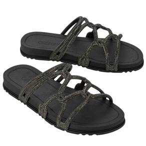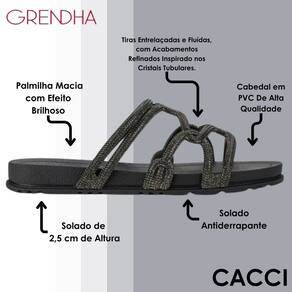 A nova rasteira Grendha Acolher com tiras entrelaçadas e fluídas, recebe acabamentos refinados inspirado nos cristais tubulares. O efeito brilhoso intensifica a tendência glamourosa que conquistou a todos na estação. A sola anatômica com linhas delicadas harmoniza com a proposta do cabedal.