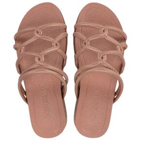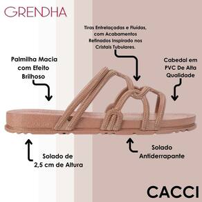 A nova rasteira Grendha Acolher com tiras entrelaçadas e fluídas, recebe acabamentos refinados inspirado nos cristais tubulares. O efeito brilhoso intensifica a tendência glamourosa que conquistou a todos na estação. A sola anatômica com linhas delicadas harmoniza com a proposta do cabedal.