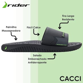 A gáspea em coverline com forro garante ainda mais comodidade no uso, recebendo enfeite de plastisol com o logo de Rider e detalhamentos de costuras e blocos de cores. Já a sola, em PVC expandido e com pintura na lateral traz formas levemente robustas que agregam ainda mais valor ao produto.