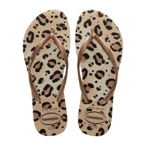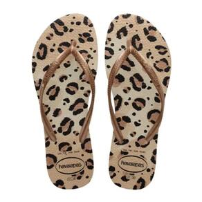 A Havaianas Slim Animals é uma ótima opção para os amantes de animal print. Com sola e tiras finas e delicadas, o chinelo tem várias opções de estampa de oncinha. Uma sandália marcante!