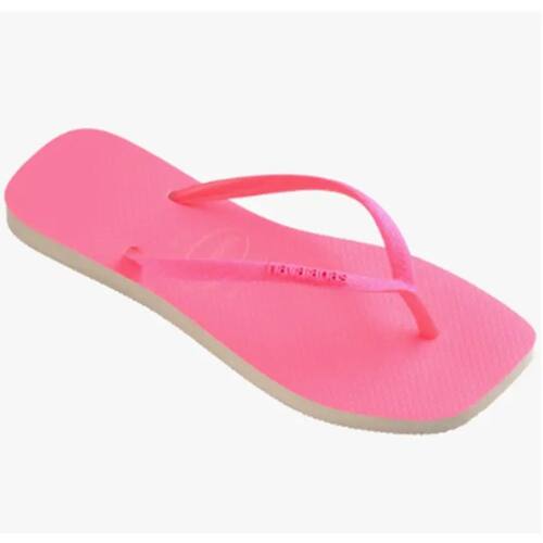 A nova Havaianas Slim Square Glitter Neon é um chinelo que chama a atenção. Primeiro devido ao formato moderno com o bico quadrado, que é um super diferencial. Segundo, pela paleta de cores neon bem vibrantes. Por fim, tem o efeito glitterizado brilhante nas tiras.