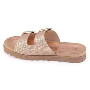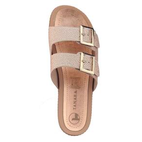 Chinelo feminino Tanara T8131 é moderno e confortável, fabricado em material sintético, apresenta toda a qualidade da marca. Este chinelo é Flatform e destaca-se em looks para passeios e também tem conforto para o dia a dia. Seu cabedal tem como destaque suas duas tiras com 3cm de largura cada contornando o peito do pé decoradas com pequenos strass rosê e duas fivelas grandes douradas, trazendo charme e proporcionando maior respirabilidade ao calçado, o bico é arredondado. O calcanhar neste modelo é aberto, a palmilha fixa é almofadada, com a Logo da marca. O Flatform com 2cm, solado com frisos para maior segurança.