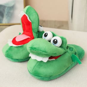 Material: algodão. Adorável design de desenho animado — Com uma aparência divertida de crocodilo com olhos e dentes grandes, esses chinelos de pelúcia trazem uma atmosfera divertida e inovadora à sua coleção de calçados para uso interno. Conforto macio e fofo — Feito com material de algodão de alta qualidade, oferecendo um toque aconchegante e quente, perfeito para manter seus pés confortáveis durante o inverno ou em casa. Chinelo doméstico adequado para uso interno — leve e respirável, ideal para usar em casa, no chão do quarto ou na sala de estar sem causar desconforto. Duráveis e fáceis de cuidar — Projetados com costuras resistentes e solas macias, esses sapatos são fáceis de limpar e manter, garantindo um uso duradouro. Ótimo para todas as idades — Um estilo divertido e fofo que agrada a crianças, adolescentes e adultos, tornando-o uma adição divertida a qualquer coleção de calçados domésticos.