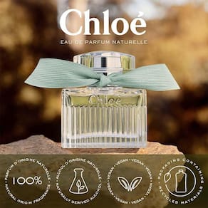 Exalando o aroma moderno de rosa orgânica, Chloé Naturelle Eau de Parfum é um perfume floral irresistivelmente feminino, conectando a força e a espontaneidade da natureza com a da mulher de espírito livre Chloé. Sem esforço, elegante, mas também autêntica e consciente, vive em harmonia com o ambiente natural que preza e que a inspira.
