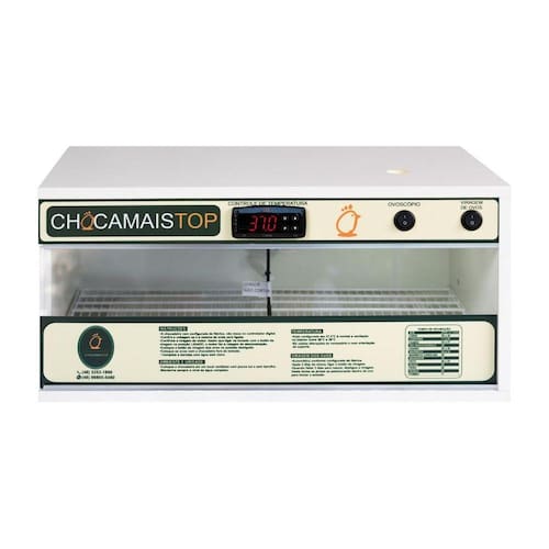 Chocadeira 72 Ovos + Ovoscopio 220V Chocamaistop Produto fácil de usar e com manual de instruções Basta posicionar os ovos e seguir as orientações do manual Cada produto é testado e configurado na fábrica Menor consumo: 220v Ótimo isolamento térmico Material em mdf Aquecimento com resistência níquel cromo Porta de ps poliestireno cristal Características: Viragem dos ovos automática Termostato de última geração Controle de temperatura automática Configurado de fábrica Ventilação forçada Bandeja de água Manual de usuário Ovoscópio Aumente sua taxa de eclosão. O ovoscópio é utilizado para analise embrionária, através desse exame é possível determinar problemas antes da eclosão, como trinca interna, má formação da casca, verificar os ovos que estão galados após 1/3 da realização da choca. Não acompanha lâmpada de led. Você pode usar uma lâmpada de led 7w.
