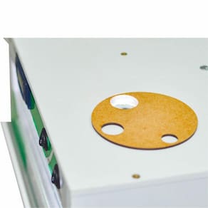 A porta de acrílico com puxador facilita o acesso aos ovos, enquanto a bandeja perfurada com estampo profissional e dobras ante acidente evita qualquer imprevisto durante a chocagem. A bandeja de água é feita de material plástico de alto impacto, garantindo sua durabilidade.